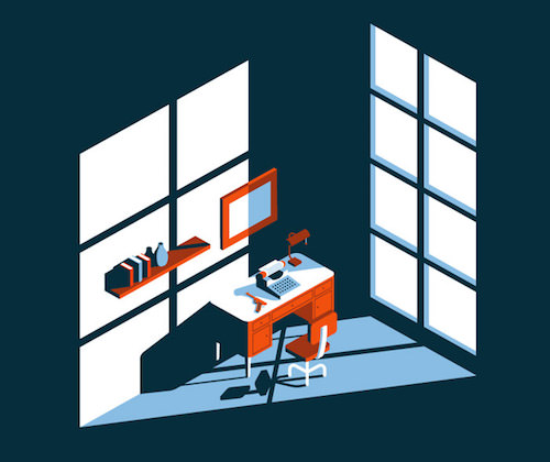 What an awesome idea to use a revolving door to illustrate ‘how to manage your checking account’. I also very much like how the darker color is giving the figures a bit of volume. Again, perfect shadow and light which makes it so beautiful.