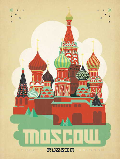 The colors let this vintage travel poster shine. The way how the structure of the buildings are created is also very inspiring.
