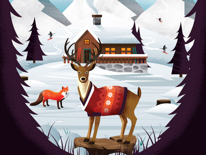 Enjoying the mood in this illustration. The sweater on the deer is such a nice detail that drives it all home.