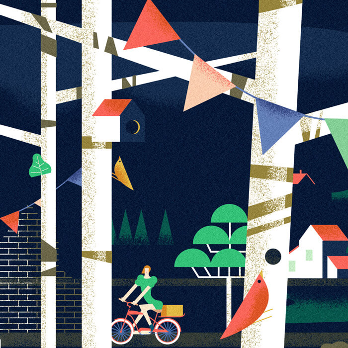 Many people find it difficult to get their minds back into work after a holiday season filled with love, food, and friends. May 2017 bring you a healthy and inspiring adventure. As for that kick-start inspiration, I hope this article will help get you back in the creative mindset. The above illustration has a style that I’m sure everyone will admire. The combination of colors used is simply marvelous — so simple, yet so complex.