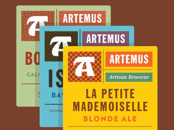 A very nice identity design for Artemus, a new craft brewery in Paris. These are the front labels. Great colors and typography.