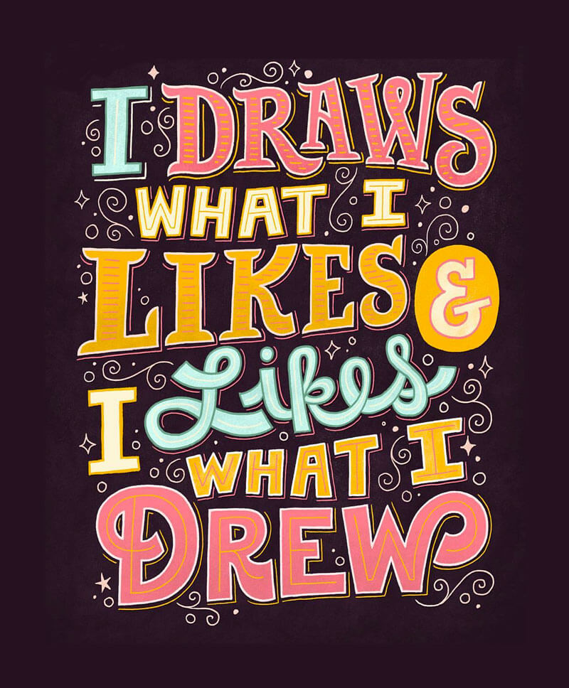 “When I’m stressed about work, I just think about this. Drawring!” Beautiful custom typography and great colors.