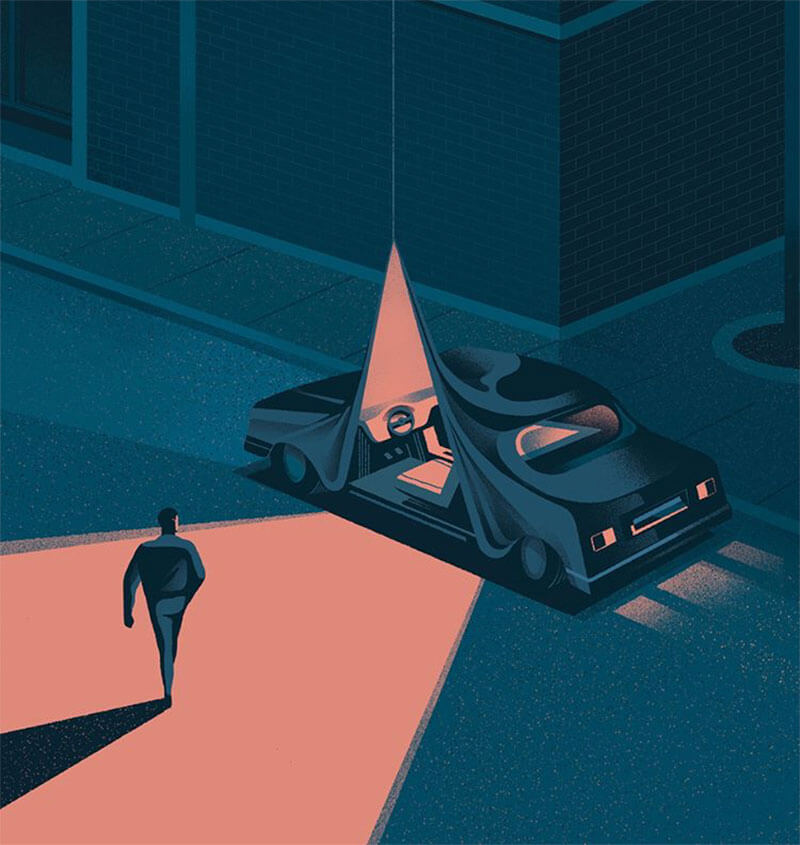 With the atmosphere in this illustration you just feel the night. Come in and enjoy the ride.