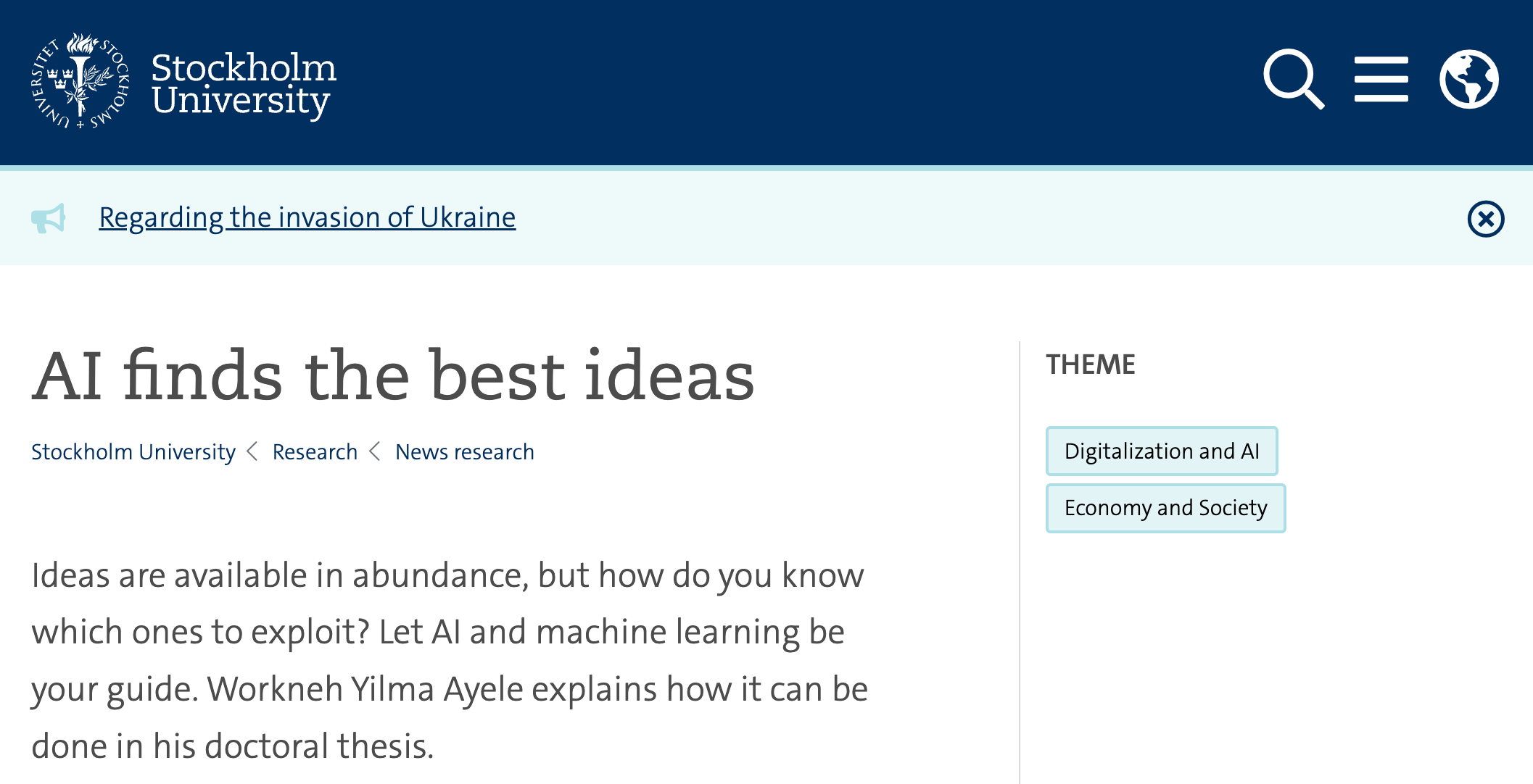 On the University of Gothenburg website, much of the screen space is used for navigation menus and visuals. Every time a user wants to explore a page’s content, they need to scroll the entire screen first. It might help to change the aspect ratio a little to help users focus on the content of the page.
