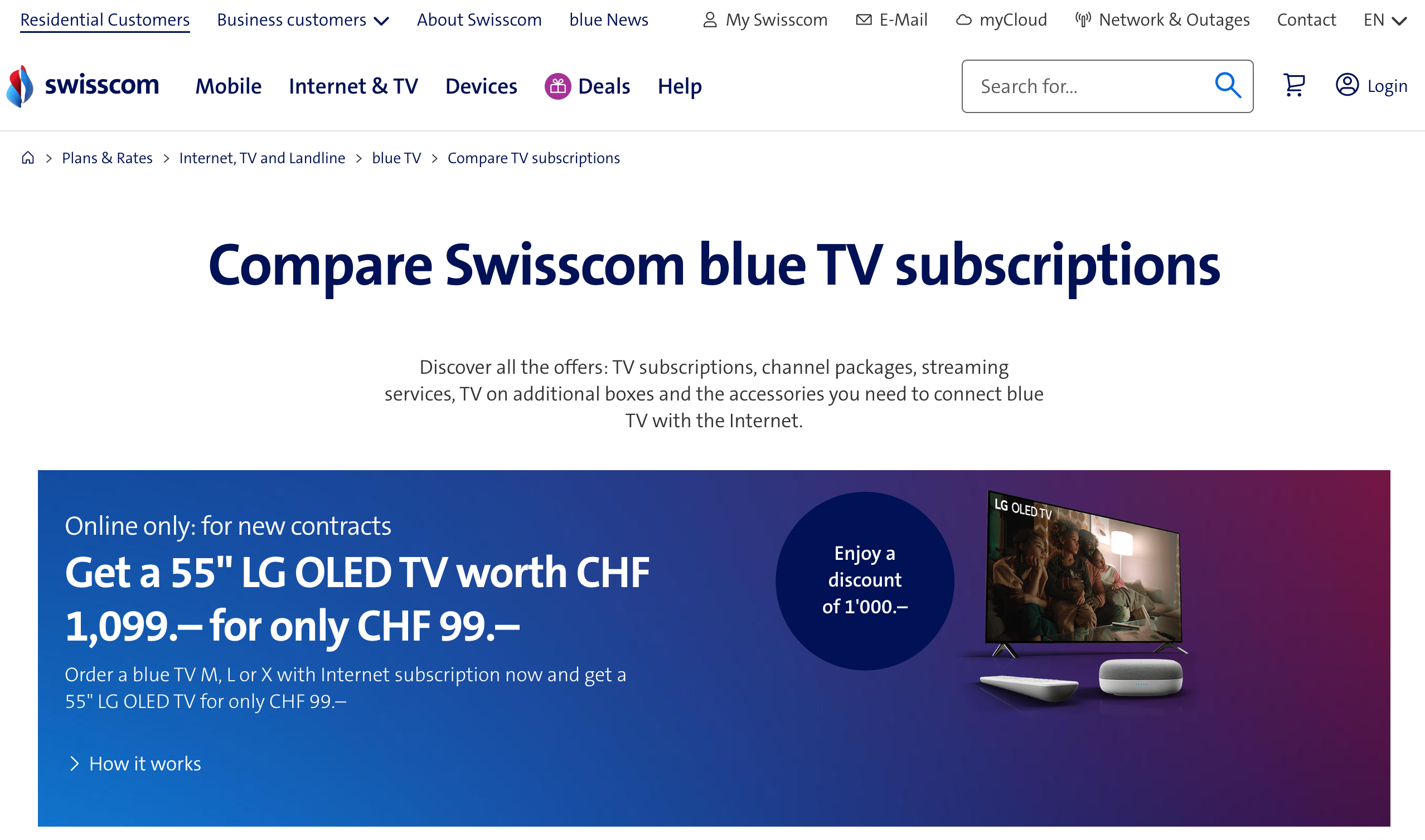 Other times breadcrumbs disappear entirely, like it currently is on Swisscom. Then, users have to rely on global navigation every time they want to navigate, and often the current page has to be discovered through tiring drill-down navigation on a small screen.