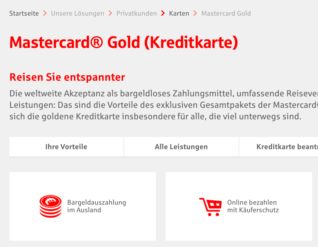 In Sparkasse’s breadcrumbs, “Startseite” (Homepage) and “Karten” are actually links, but the sections in between are not. There might be very good reasons for this decision, but the general expectation is very clear: all breadcrumbs are links.