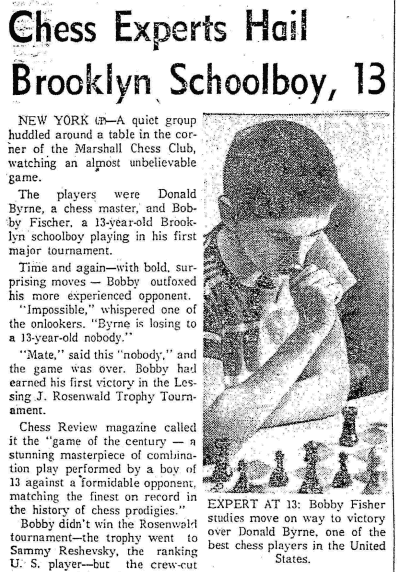 Wait a second. Isn’t 1956 the year when a 13-years old Brooklyn school boy Bobby Fischer enter his first major chess tournament and famously outfoxed a chess master Donald Byrne with bold, surprising moves? The game has been discussed in chess books and collections and was famously proclaimed as the “Game of the Century”. Could it be that our character is studying exactly that game?