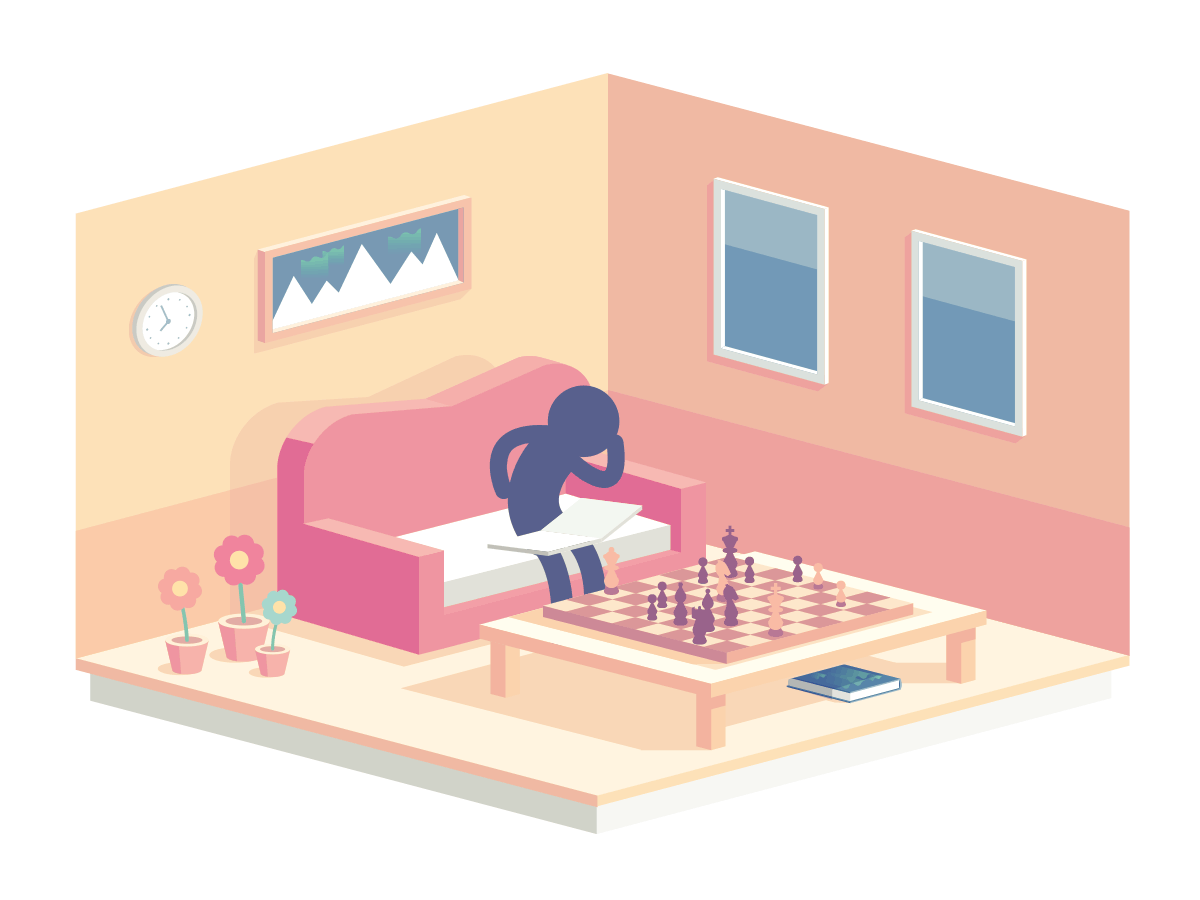 We see a character studying a book day and night long, touching a chess figure and putting it back — perhaps thinking about the next move. Oh, in fact, the file name is what-is-the-right-move, so it’s probably the move that we are searching for here. But is it a chess move, or is it a general move, or an action we have to take here? Studying the position of pieces in the game might be, again, time-consuming, and while our mysterious character picks the white Queen to play, it doesn’t have to mean that this figure is on — after all, he places it back on the board.