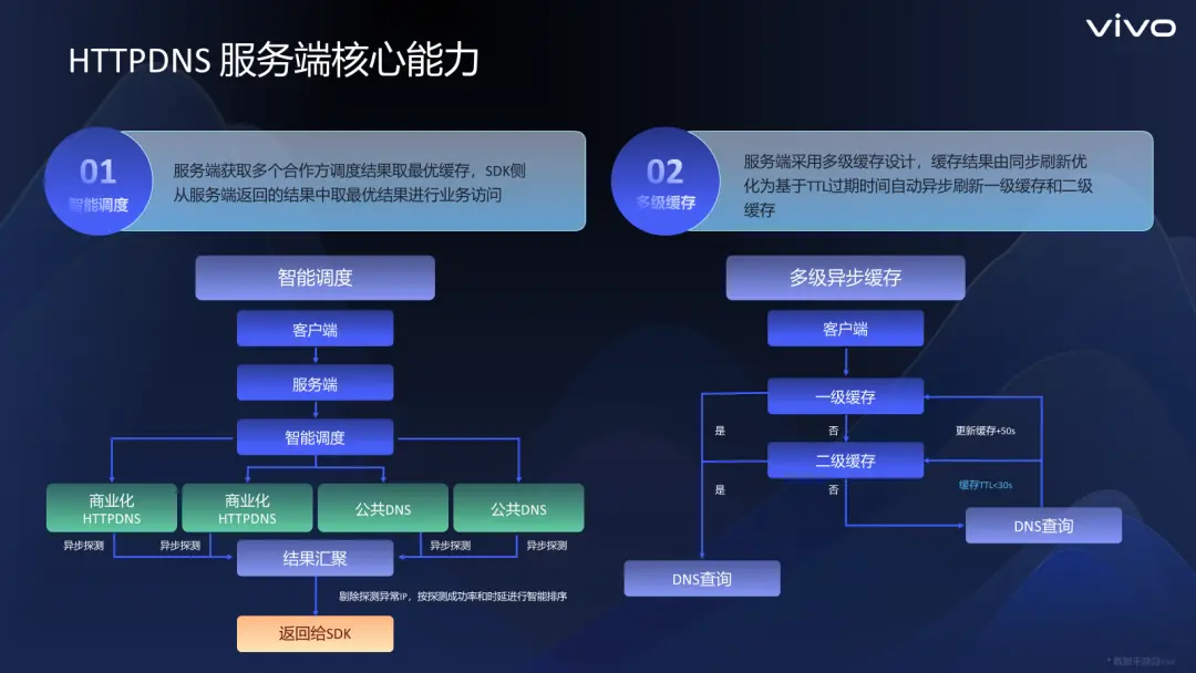 • 服務端智能調度提升 vivo HTTPDNS 的解析成功率,服務端解析成功率達到99.9%,進一步助力端側業務的訪問體驗。
