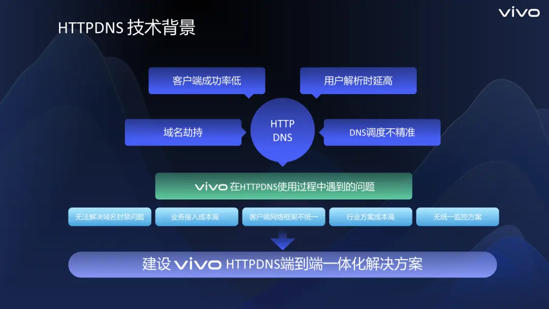 • 為了解決以上落地過程中的難題,我們需要建設 vivo HTTPDNS 端到端的一體化解決方案。
