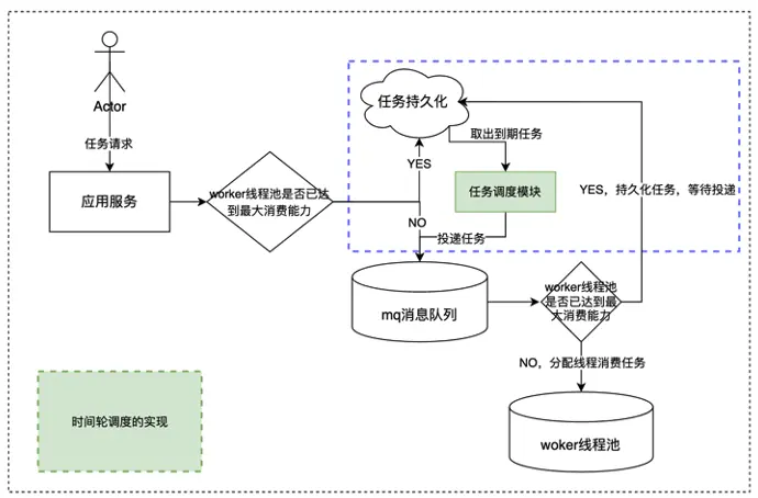 圖中,綠色模塊為整個系統設計中的用以調度定時任務的任務調度模塊,利用時間輪來統一管理這些定時任務。