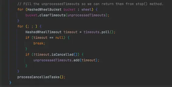 這個類維護了一種稱為“wheel”的數據結構,也就是我們説的時間輪。簡單地説,一個 wheel 就是一個 hash table,它的 hash 函數是任務的截止時間,也就是我們要通過 hash 函數把這個任務放到它應該在的時間槽中,這樣隨着時間的推移,當我們進入某個時間槽中時,這個槽中的任務也剛好到了它該執行的時間。