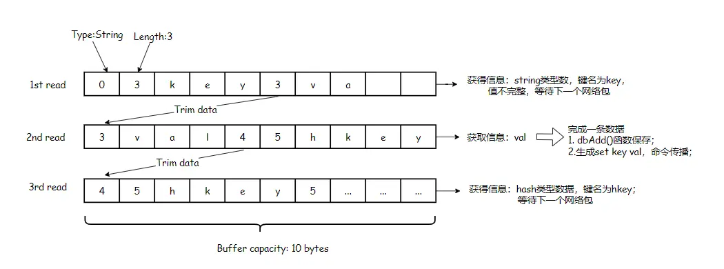 對於 slot 遷移操作而言,主要涉及遷移源和目的兩端的開銷,對於基於主從同步機制實現的新 slot 遷移,其源節點主要開銷在於生成 RDB 和傳送網絡包,正常對於請求時延影響不大。但是因為目的節點需要對較大的 RDB 文件片段數據進行接收、加載,由於目的節點遷移時也需要對正常服務請求響應,此時不再能採用類似 slave 節點將所有數據收取完以後保存本地文件,然後進行阻塞式數據加載的方案,所以新 slot 遷移功能對遷移目的節點的數據加載流程進行了針對性改造,目的節點會按照接收到的網絡包粒度將數據按照下圖所示進行遞進式加載,即 slot 遷移目標節點每接收完一個 RDB 數據網絡包就會嘗試加載,每次只加載本次網絡包內包含的完整元素,這樣複合類型數據就可以按照 field 粒度加載,從而降低多元素大 key 數據遷移對訪問時延的劇烈影響。通過這樣的設計保持原來單線程簡潔架構的同時,有效地控制了時延影響,所有數據變更操作都保持在工作線程進行,不需要進行併發控制。通過以上改造,基本消除了遷移大 key 對遷移目的節點時延影響。