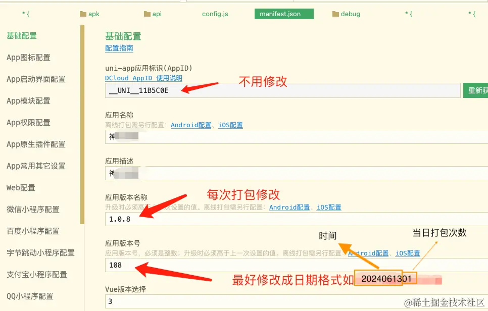 版本號versionCode 前八位代表年月日,後兩位代表打包次數