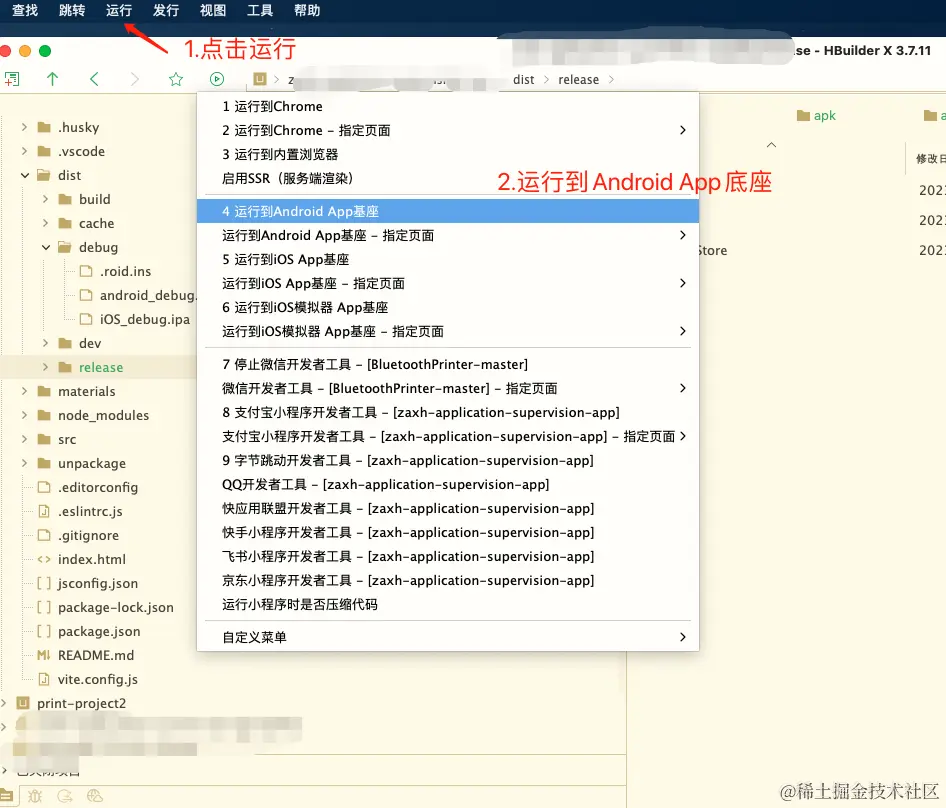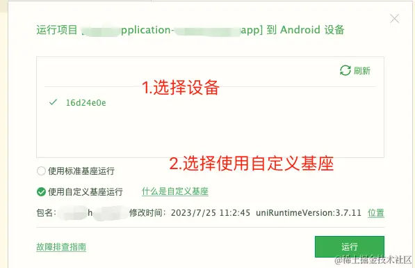 如果需要運行的話,點擊運行 -> 運行到Android App底座