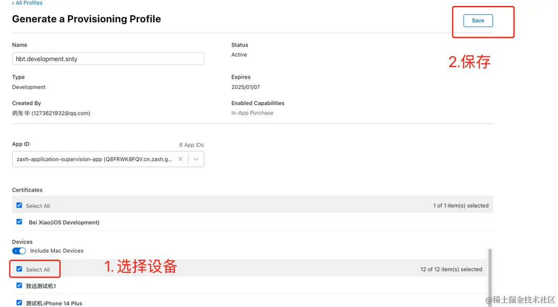 第三步重新生成開發證書並且勾選新增的測試機,建議一次性將所有需要測試的手機加入將來就不用一遍遍重複生成證書了