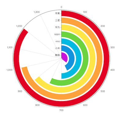 圓形條形圖是徑向條形圖的一種特殊形式,它固定了起點和終點,使所有條形都在同一圓周上開始,只在半徑方向上延伸。