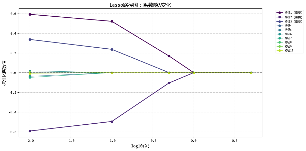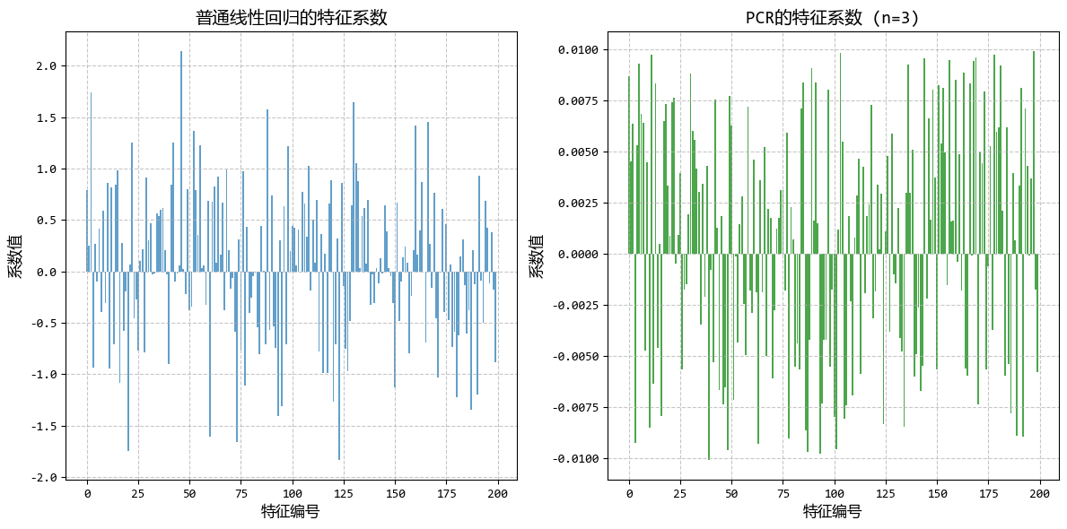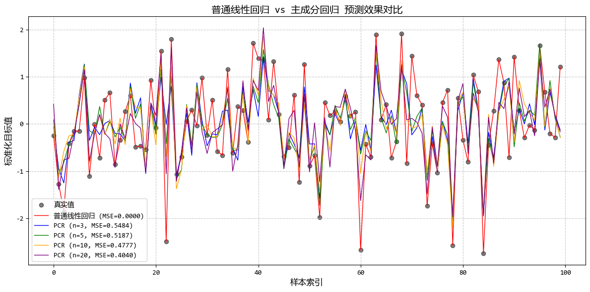 - 特徵數 > 樣本數,或特徵嚴重共線性: 必須上正則化手段,用 嶺迴歸、Lasso、ElasticNet,或者降維類的 PCR/PLS。