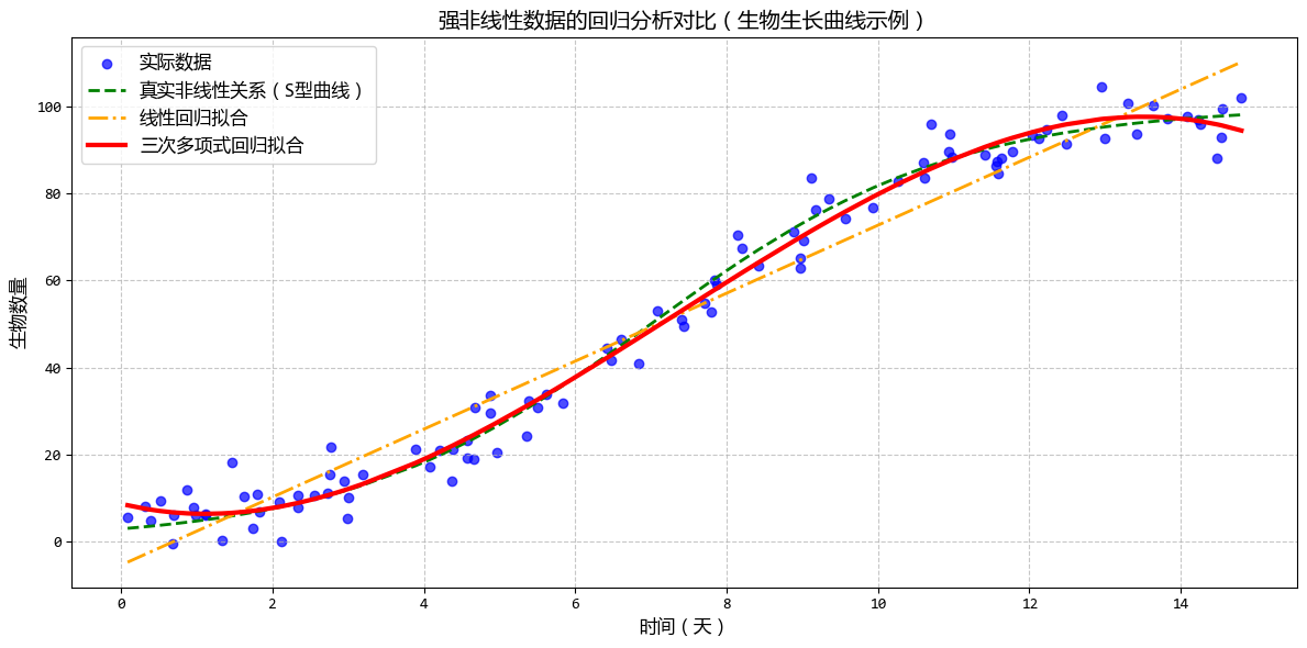 # 1. 構造強非線性測試數據(模擬生物生長曲線)