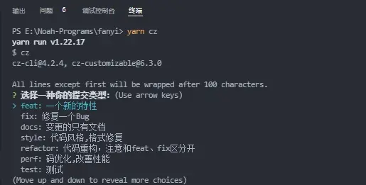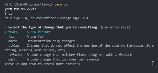 完成後,通過命令yarn cz,你如果是全局安裝的 commitizen,那你直接 git cz,都可以通過以下交互式的撰寫 commit messag 然後提交