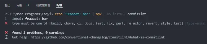 解決以上問題後,我們再測試一下,可以看到,不符合規範的 commit-msg 是會導致報錯的,也就 commit 不了了,説明我們的 commitlint 已經生效了~ 👏👏👏