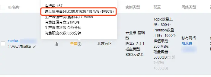 在實例列表上,每個集羣都有對應的健康度展示。當健康度顯示為“警告”字樣時,可以將鼠標移至其上查看彈出的詳細數據。這個數據會展示當前用户的峯值流量以及發生限流的次數,用户可以根據這裏的數據判斷該實例是否發生過限流。