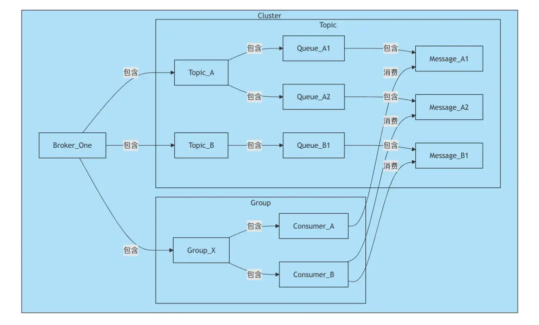 我們將這個數據模型組織成一個樹狀的結構,GraphQL 的查詢語法非常適合這種樹狀結構的查詢:可以通過 GraphQL 的嵌套查詢來獲取 Broker、Topic、Queue 和 Message 之間的關係。