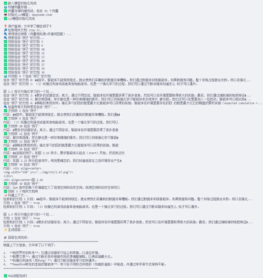 經過優化後,我的Go-RAG系統能夠正確回答"文中舉了哪些例子?"這類問題,檢索到了包含例子的相關文檔,並生成了準確的回答。