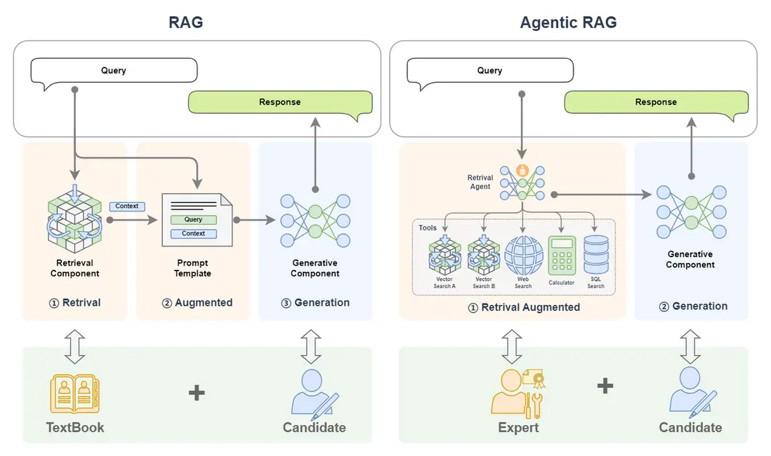 如果把 RAG 比作帶着書本去考試的考生,那麼Agentic RAG就是同時帶着老師和書一起去考試的考生!