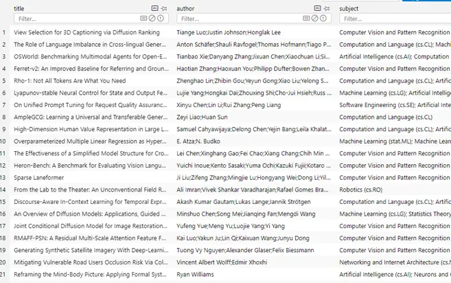 上面這是一個獲取文檔信息腳本,負責解析 2024.md 中的數據,並取100篇為例,然後解析對應的 url ,然後通過獲取每個 url 對應的論文標題、作者和主題的信息,並記錄下來。