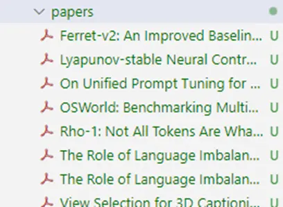 data = ["View Selection for 3D Captioning via Diffusion Ranking", "The Role of Language Imbalance in Cross-lingual Generalisation: Insights from Cloned Language Experiments", "OSWorld: Benchmarking Multimodal Agents for Open-Ended Tasks in Real Computer Environments", "Ferret-v2: An Improved Baseline for Referring and Grounding with Large Language Models", "Rho-1: Not All Tokens Are What You Need", "Lyapunov-stable Neural Control for State and Out..."]