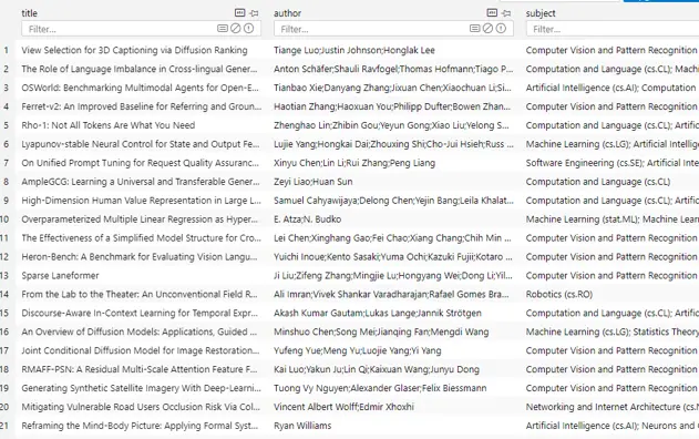 ''', (paper['title'], paper['author'], paper['subject']))
