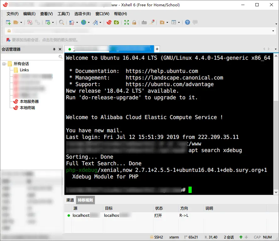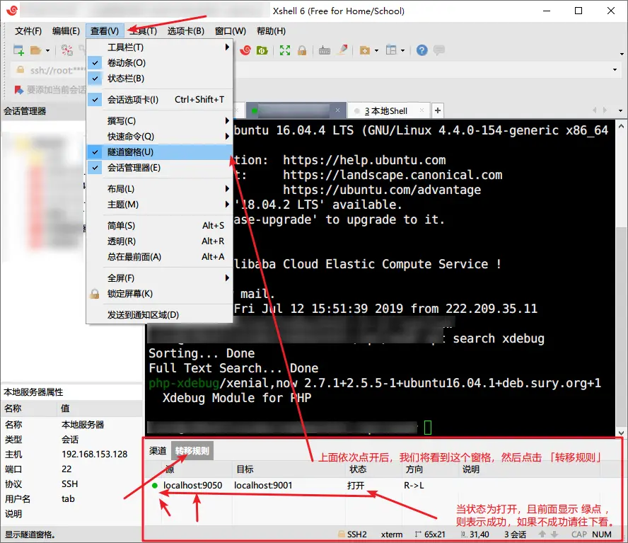- 確認 XShell 隧道連接是成功狀態。