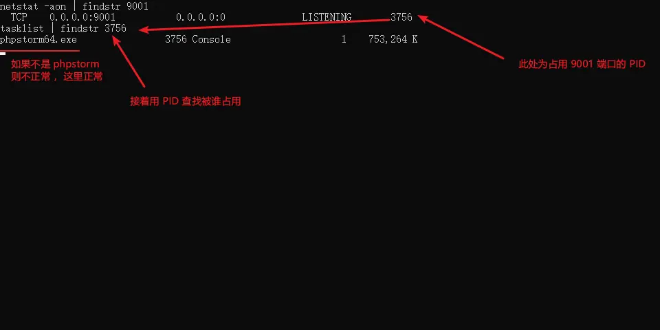 netstat -aon | findstr 9001