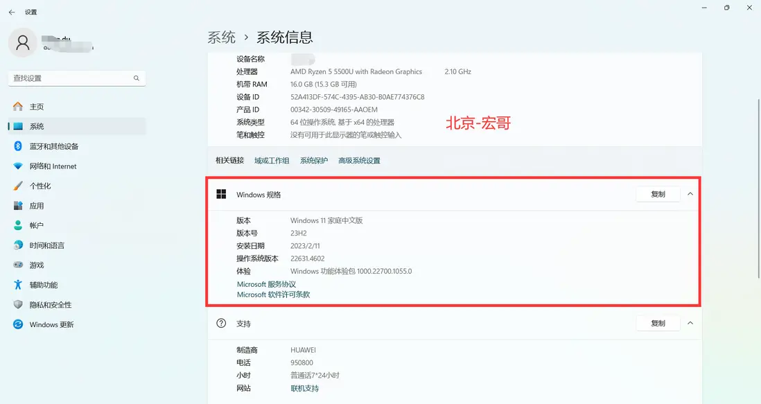 1.宏哥的環境是Windows 11版本 64位系統(32位的同學自己想辦法哦,當然了現在32位的一般很少見),如下圖所示:
