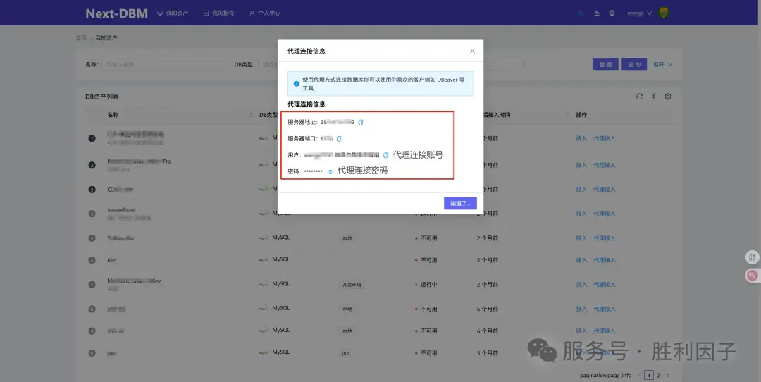 數據庫無需開放外網端口,所有連接通過 Next-DBM 代理