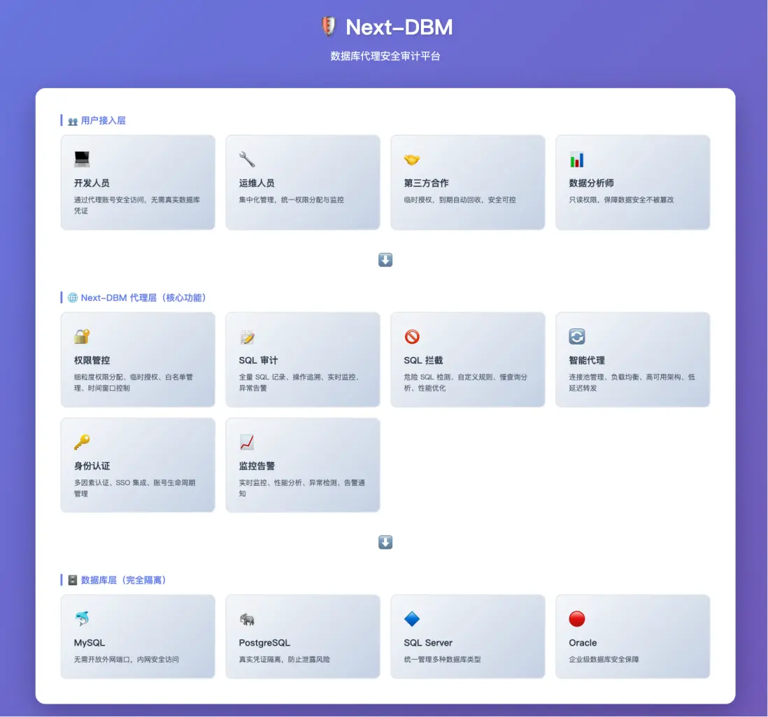 它是一款專業的數據庫代理與權限管理系統,專門為解決企業數據庫安全與訪問控制問題而設計。