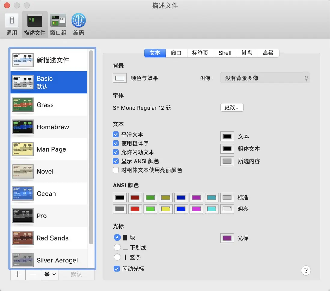 顏值真的就仁者見仁,mac終端提供了自定義主題的功能,在菜單終端->偏好設置中