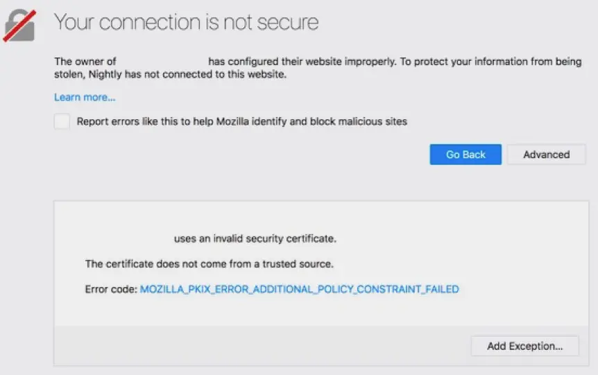 瀏覽器錯誤代碼: MOZILLA_PKIX_ERROR_ADDITIONAL_POLICY_CONSTRAINT_FAILED