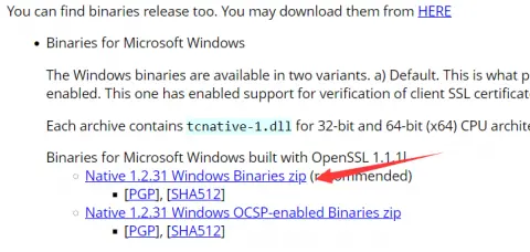 因為這裏講的是Windows系統上更新tomcat的OpenSSL,我們下載windows版本
