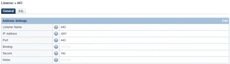 創建一個將Secure設置為的偵聽器Yes。SSL的官方端口是443,但也可以使用其他端口。