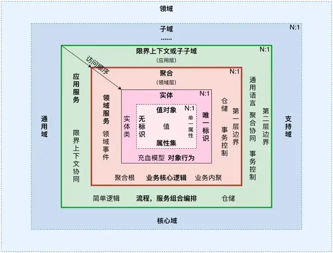 • 最內層:最基本的數據單位,值對象、屬性集、唯一標識等,不能直接使用。
