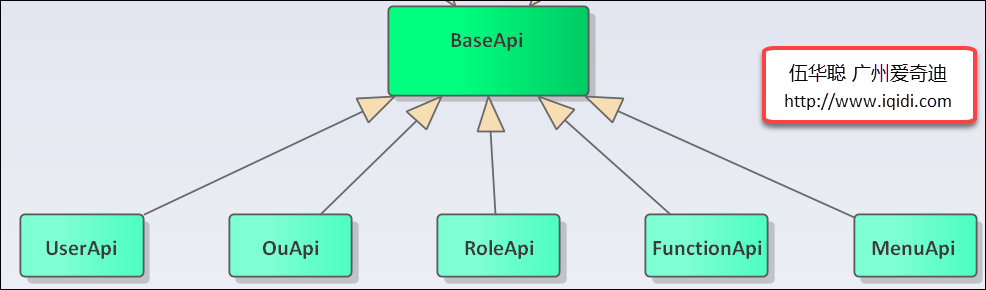 這樣,我們在創建一個業務類的時候,如果沒有特殊的自定義接口,只需要繼承基類BaseApi即可具有所有的常規基類方法了。