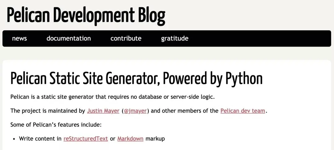 Pelican,由 Python 語言編寫的靜態網站生成器。