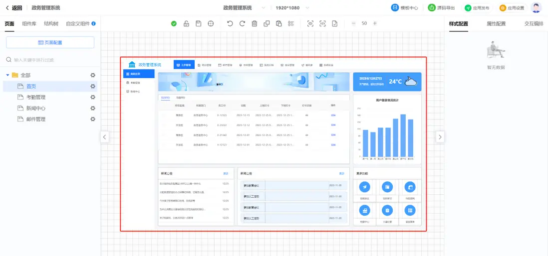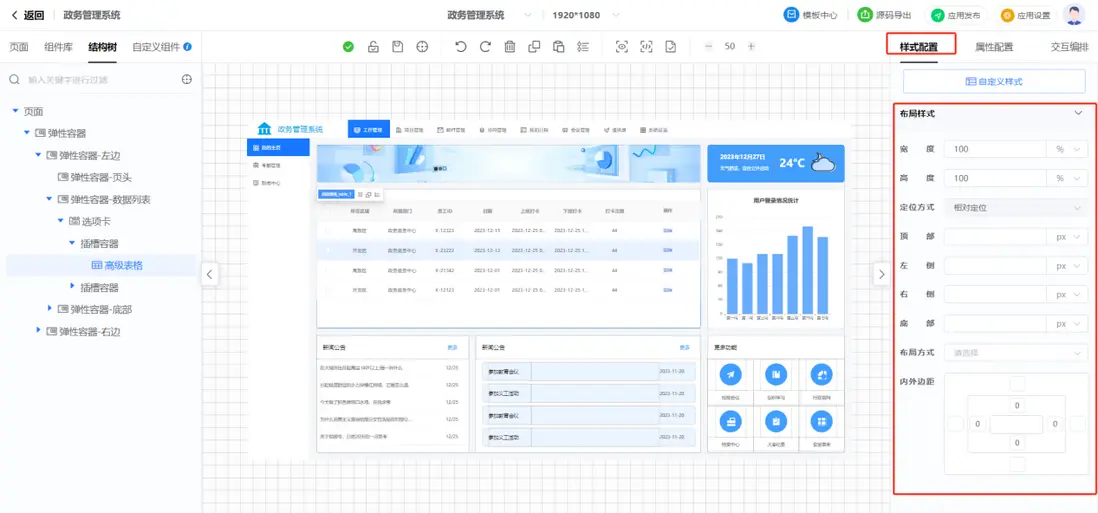 樣式配置就是給選中的組件配置佈局樣式、背景樣式等,佈局樣式中可以設置被選中組件的高度、寬度、頂部、左側、右側、底部等邊距,背景樣式中可以設置背景圖片、顏色、邊框的樣式等。