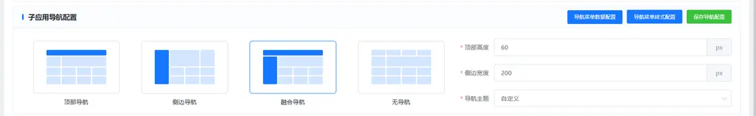 導航指的是頁面中的菜單;導航也分為好幾種樣式:頂部導航、側邊導航、融合導航、無導航。可以給不同的子應用選擇不同的導航樣式。對於不同的導航也可以進行自定義的配置。