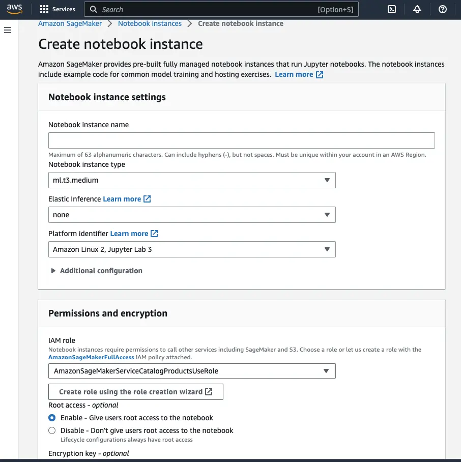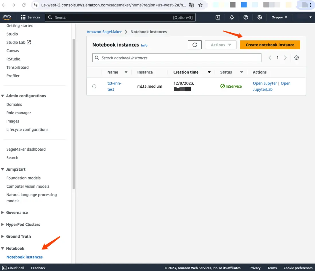 訪問 SageMaker,翻到 Notebook, 點擊 Create notbook instance
