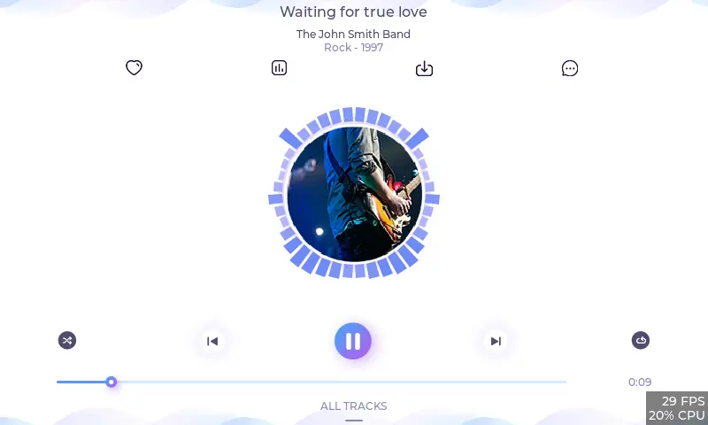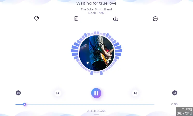 在精簡LVGL源碼的時候,我們保留了demos文件夾,該文件夾中存放的就是LVGL的官方示例。由於demos文件夾中存在多個官方例程,不同的例程對硬件的要求有所不同,這裏以官方的音樂播放器為例(該示例對硬件要求較高),為大家介紹官方示例的移植流程,具體步驟如下: