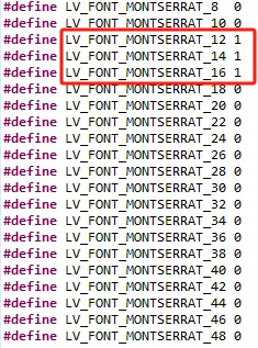 如果大家遇到此報錯,可以打開lv_conf.h文件,找到相應字體的宏定義,並將其設置為1即可,如下圖所示: