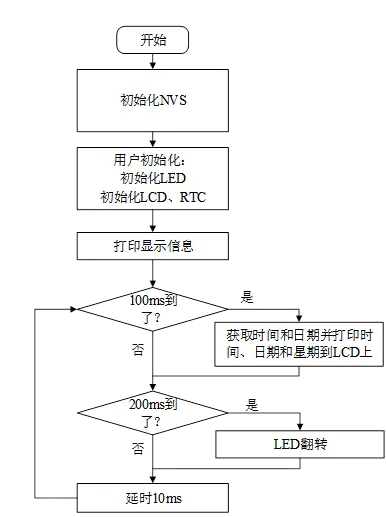 程序流程圖能幫助我們更好的理解一個工程的功能和實現的過程,對學習和設計工程有很好的主導作用。下面看看本實驗的程序流程圖: